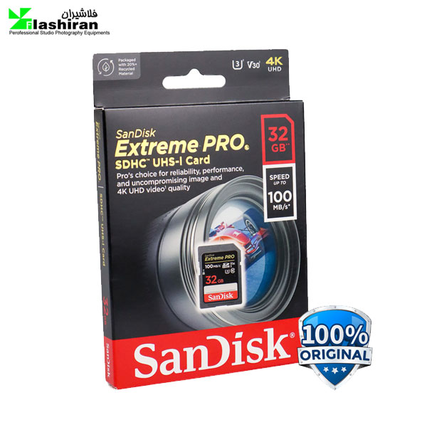 این کارت حافظه SanDisk دارای ظرفیت۳۲گیگابایت بوده و به لطف برخورداری از ویژگی‌های کارآمد متعدد، یکی از انتخاب‌های اصلی برای عکاسان و فیلم‌برداران بشمار می‌رود. همان‌گونه که از نام این کارت حافظه SD نیز مشخص است از سری محصولات خانواده Extreme Pro کمپانی سندیسک می‌باشد و از این رو می‌توان حساب ویژه‌ای بر روی سرعت و عملکرد آن باز کرد. کارت حافظه فوق از نوع کلاس ۱۰ بوده و از استاندارد سرعت UHS-I U3 نیز پشتیبانی کامل به عمل می‌آورد. به همین دلیل، حداقل سرعت ذخیره‌سازی آن حدود ۳۰ مگابایت بر ثانیه خواهد بود و طبق ادعای شرکت سازنده از این میزان پایین‌تر نخواهد آمد. علاوه بر این، کارت حافظه مذکور دارای استاندارد V30 نیز می‌باشد و اگر دستگاهی که از این کارت حافظه SD در داخل آن بهره می‌گیرید از این استاندارد پشتیبانی کند، آنگاه به حداقل سرعت ذخیره‌سازی بالاتری دست پیدا خواهید کرد. در مشخصات فنی کارت حافظه Extreme Pro SDHC UHS-I آمده است که حداکثر سرعت ذخیره‌سازی آن در حدود 100 مگابایت و حداکثر سرعت بازخوانی اطلاعات ذخیره‌شده بر روی کارت حافظه نیز معادل 100 مگابایت بر ثانیه خواهد بود. چنین سرعت بالایی در ذخیره‌سازی و بازخوانی اطلاعات سبب شده تا این کارت حافظه سندیسک برای ضبط روان فیلم‌های فول اچ‌دی، ۳D و یا حتی ۴K انتخاب ایده آلی باشد. همچنین برای عکاسی پی‌در‌پی با فرمت RAW نیز کاملاً مناسب خواهد بود.