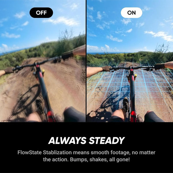 یکی از جذابترین تکنولوژیهای بکار رفته در دوربین Insta 360 X5 Action Camera، توانایی حذف خودکار میله سلفی از تصویر نهایی است که جلوهای شبیه به پرواز یک پهپاد یا داشتن یک فیلمبردار نامرئی به ویدئوهای شما میدهد. این حالت، حس حضور و غوطهوری را در مخاطب شما افزایش میدهد و این امکان را فراهم میکند که ویدئوهای اکشن شما بسیار پویا و حرفهای به نظر برسند. علاوه بر این، سیستم تثبیتکنندهی پیشرفته FlowState به کار رفته در دوربین اکشن اینستا Insta 360 X5 Action لرزشهای شدید هنگام دویدن، دوچرخهسواری یا اسکی را بهطور کامل از بین میبرد و خروجیهایی بسیار نرم و سینمایی را در اختیار شما قرار میدهد.